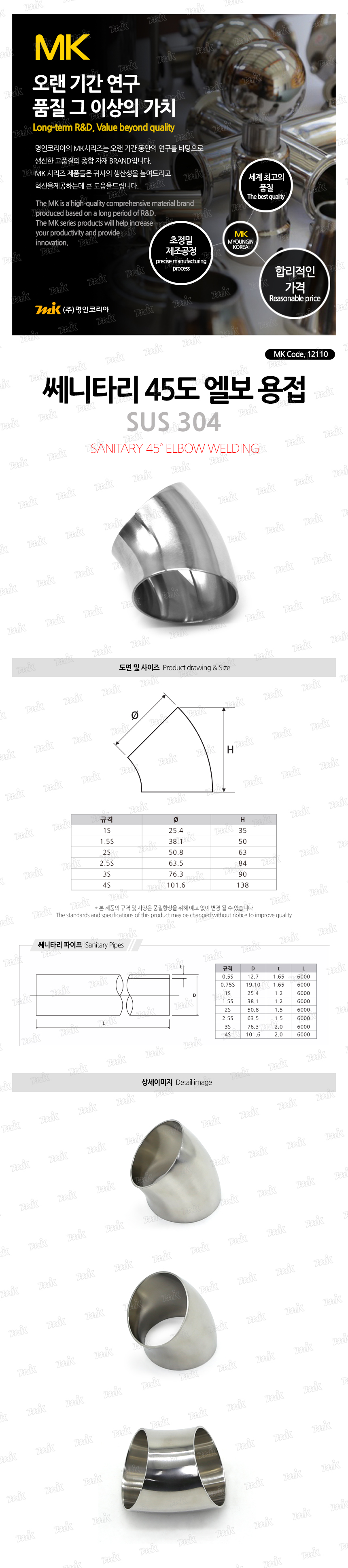 쎄니타리 45도엘보용접(MK)(SUS304) (12110)