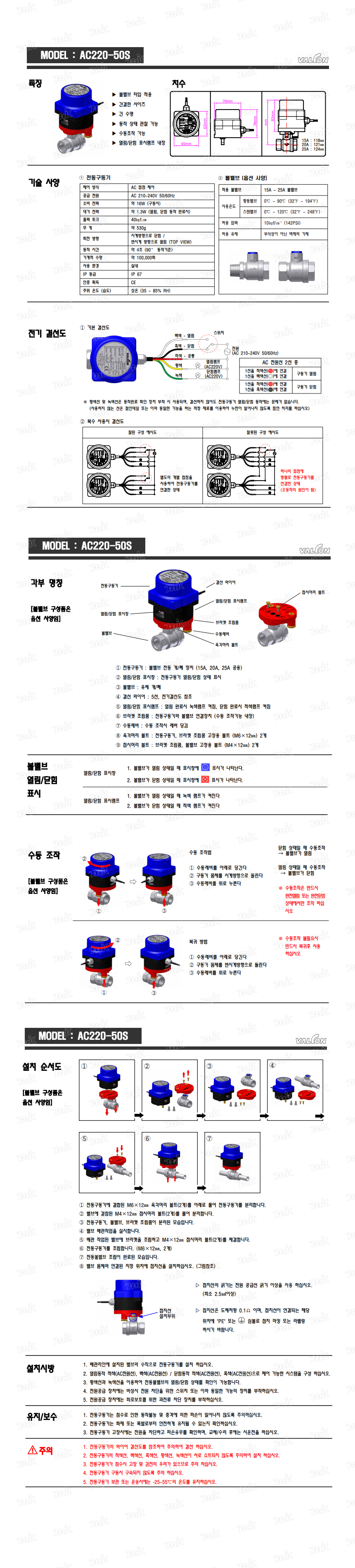 이미지 확대보기밸콘 방수용 전동밸브세트(크롬도금/AC220V) 15A,20A,25A(17616)