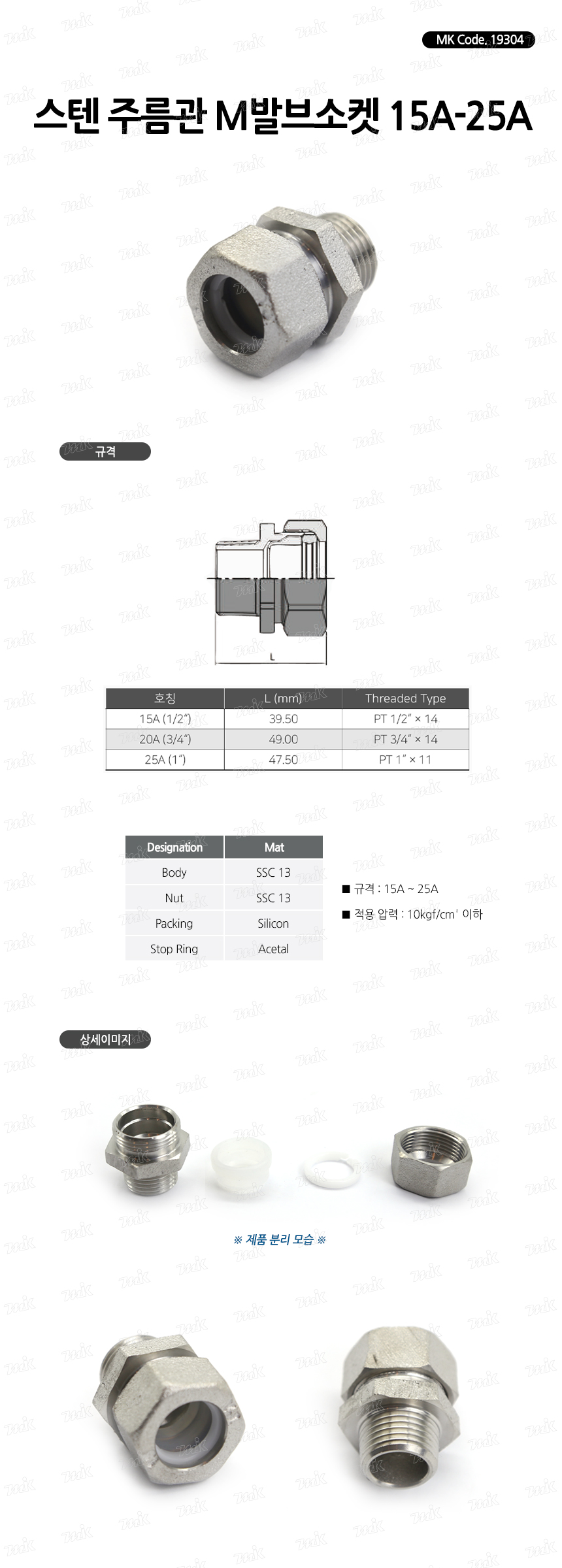 스텐 주름관 M발브소켓 15A-25A (국산)(19304)