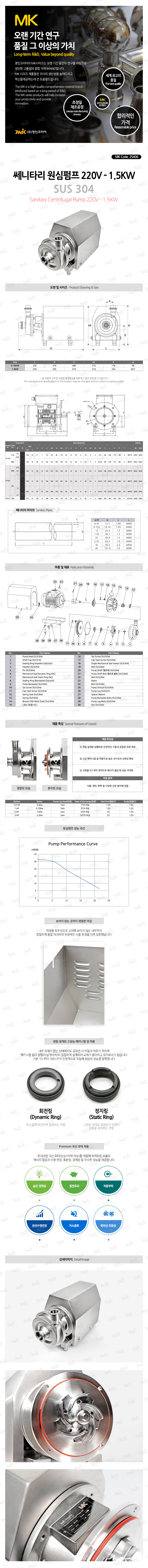 • 쎄니타리 원심펌프(무광) MK(SUS304)-220V단상 2마력(1.5KW) (25406)